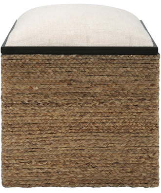 • Features: A unique blend of casual and coastal styles, this accent stool serves as a multifunctional storage piece with its removable lid. can be used as extra seating or a pulled up as a footrest. the square base is wrapped in natural braided straw with matte black iron details and a plush upholstered seat in light beige performance fabric.