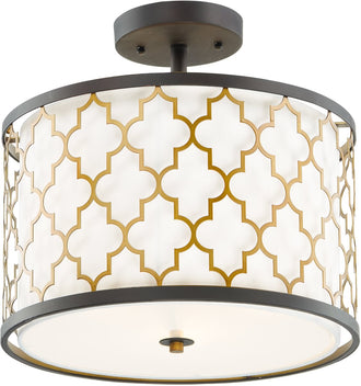 16"W Crest 3-Light Semi-Flush Mount/Pendant Oil Rubbed Bronze / Antique Brass