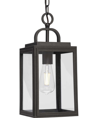 Partner timeless elegance with a pinch of coastal vibe with an outdoor hanging lantern light from the Grandbury Collection. A beautiful square frame crafted from corrosion-proof composite polymer material features a half loop on top of the structure and is accented by crisp, clear glass panes. Made with DURASHIELD, a durable material specially designed and tested to resist harsh environmental conditions.