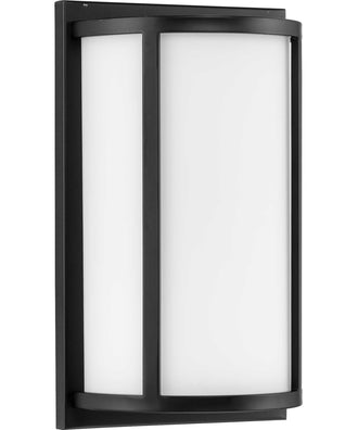 The Parkhurst Collection wall sconce provides a timeless, elegant appeal to home theaters, halls and home theaters and bathrooms. The fixture's sophisticated design elevates contemporary and new traditional settings. The wall sconce features a crisp matte black finish. Graceful curves and bold angles combine to create a softly structured look, allowing unobstructed layers of light. Soft illumination is cast through etched glass shades. Uses (2) 60-Watt maximum, medium base bulbs or LED equivalent, that is sold separately, and dimmable when used in conjunction with a dimmable bulb. Measures 7.5-in. width by 12-in. height, extends from wall 4-in. Certifications: cULus Damp Location listed, fixture can be used in rooms where moisture may be present. Warranty: Our 1-Year Limited Warranty guarantees your complete satisfaction with your purchase and includes professional after-sales customer service support. Includes installation instructions and mounting hardware for a quick, easy installation. Progress Lighting products are designed for exceptional quality, reliability, and functionality