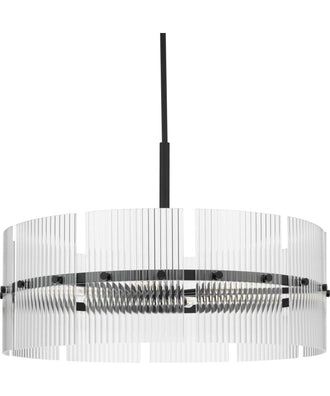 The Seville Collection ensconces light within a translucent design. A series of finely ridged architectural glass elements envelop a central frame finished in Matte Black to diffuse an ambient glow throughout the room. This fixture is part of the Progress Lighting Design Series, a lighting collection offering fashionable styles and luxury lighting for the home.