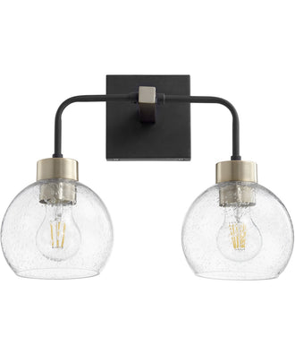 Picture this 2-light Bath Vanity Light in your home or office. Refresh your room with this Noir w/ Aged Brass-finished Bath Vanity Light by Quorum.