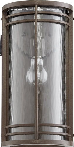 Quorum Larson 1-light Outdoor Wall Sconce Oiled Bronze w/ Clear Hammered Glass