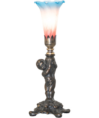 Meyda tiffany 12" High Pink/Blue Tiffany Pond Lily Cherub Mini Lamp