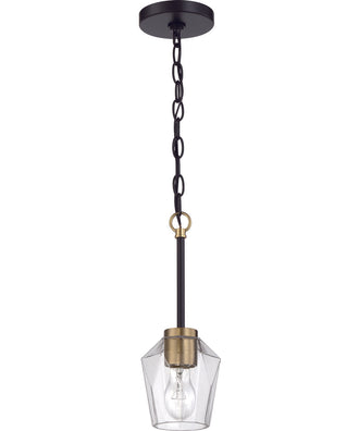 The Avante Grand 1-Light Mini Pendant in Flat Black/Satin Brass is a striking addition to any home. Its sleek and modern design features a unique faceted clear glass globe that adds a touch of sophistication and elegance to your space. The combination of flat black and satin brass finishes creates a beautiful contrast, making this pendant light a standout piece in any room.