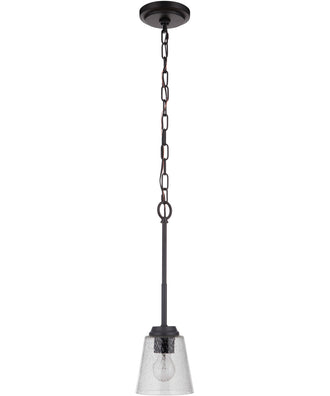 The Tyler 1-Light Mini Pendant in Flat Black is a perfect blend of simplicity and elegance. Its minimalist design features a sleek, flat black finish that adds a touch of sophistication to any space. The clear seeded glass shade provides a subtle texture, enhancing the overall aesthetic appeal. This pendant light is designed to cast a warm, inviting glow, making it an ideal choice for various settings within your home.