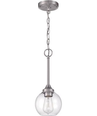 The Glenda 1-Light Mini Pendant in Brushed Polished Nickel by Craftmade is a stunning addition to any home, combining elegance with functionality. The pendant features a clear glass globe that beautifully encases the light bulb, creating an eye-catching focal point. The refined curves of the frame, paired with the brushed polished nickel finish, give this pendant a classic yet contemporary look that complements a variety of interior styles.