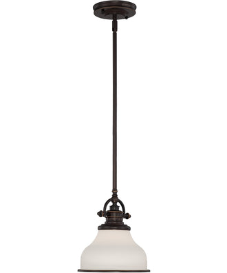 The Grant Small 1-light Mini Pendant in Palladian Bronze is a stunning addition to any home, offering a perfect blend of classic Americana styling and modern functionality. Its opal etched glass shade exudes a soft, inviting glow, reminiscent of nostalgic times, while the Palladian Bronze finish adds a touch of sophistication and warmth. This mini pendant light is designed to be both an eye-catching focal point and a practical lighting solution.