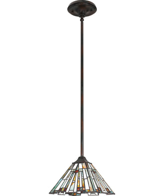 Finished in a rich valiant bronze, this pendant light adds warmth and depth to any space. The bronze finish complements the multicolored Tiffany glass, creating a harmonious blend of colors and textures. The base material is made of durable resin, ensuring longevity and stability. This stately collection is sure to enhance the ambiance of your home with its refined aesthetic.