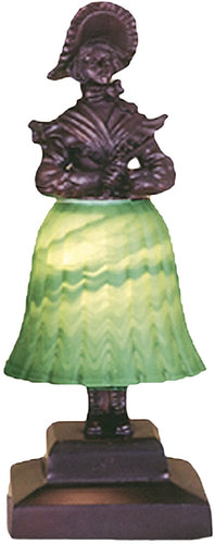 Charming; lighted sculpture of blown art glass and cast iron head; arms; legs and base; in rich Mahogany Bronze Finish.