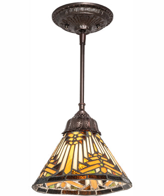 The 8" Wide Nuevo Mission Mini Pendant seamlessly integrates with various room themes and decor styles. Its classic Tiffany-inspired design is perfect for traditional and vintage-themed interiors, while the vibrant colors and intricate patterns add a touch of sophistication to contemporary and eclectic spaces. The pendant's warm tones and antique bronze finish make it a versatile addition to rustic, farmhouse, and industrial decor styles, creating a cozy and inviting ambiance.