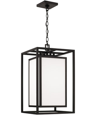 Neat and contemporary, the Aiden Outdoor Hanging Lantern creates the illusion of floating light with inner and outer rectangular forms. The Soft White glass panes cast a warm glow to perfectly complement the squared silhouette, while the Black finish delivers a distinct aesthetic. Part of our Rain or Shine Series and backed by our five-year warranty.