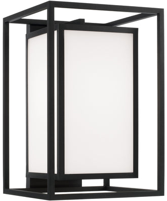 The Aiden 1-Light Outdoor Wall Lantern in Black is a perfect blend of contemporary design and functional elegance. This outdoor wall lantern features a unique design that creates the illusion of a floating light, thanks to its inner and outer rectangular forms. The sleek black finish adds a touch of sophistication, while the soft white glass panes cast a warm, inviting glow.