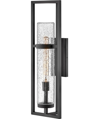 The Cordillera 1-Light Large Outdoor Wall Mount Lantern in Black by Hinkley is a stunning blend of modern design and timeless elegance. This exquisite lantern features a sleek, rectangular frame crafted from durable aluminum, finished in a sophisticated black that complements any exterior decor. Its minimalist design is enhanced by the clear seeded glass, which adds a touch of texture and visual interest while allowing the light to shine through beautifully.