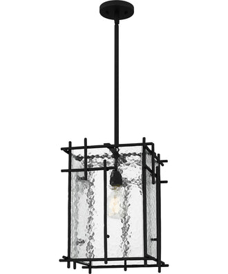 The Daphne 1-light Mini Pendant in Matte Black is a stunning addition to any home, bringing a touch of transitional elegance to your space. Its open rectangular silhouette is crafted with staggering matte black lines that create a striking contrast against the clear ice glass panels. This unique design not only adds visual interest but also allows for a beautiful play of light and shadow, enhancing the ambiance of any room.