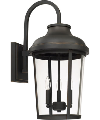 The Dunbar 3-Light Outdoor Wall Mount in Oiled Bronze with Clear Glass is a stunning addition to any exterior space. Its elegant and timeless design features a classic lantern shape, reminiscent of traditional outdoor lighting but with a contemporary twist. The oiled bronze finish adds a touch of sophistication and warmth, making it a versatile choice for various architectural styles. The clear glass panels ensure maximum light output while providing a sleek and polished look.
