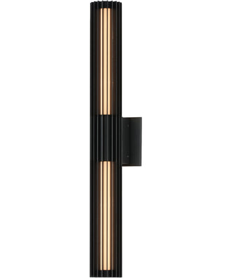 The Citadel 28 inch LED Outdoor Wall Sconce in Black is a stunning addition to any modern exterior. Its sleek, vertical design features aluminum strands that surround an acrylic LED tube, creating a captivating visual appeal. The matte black finish adds a touch of sophistication, making it a versatile piece that complements various architectural styles. The thin profile extends less than 4 inches from the wall, ensuring a streamlined look that doesn't compromise on style.