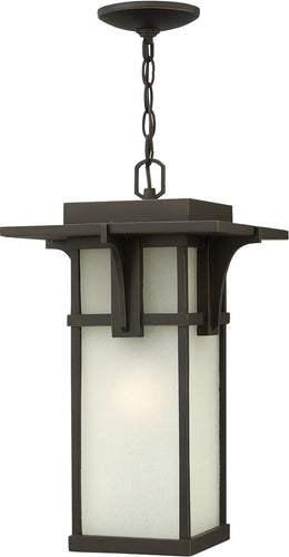 The 11" W Manhattan 1-Light Hanger Outdoor Oil Rubbed Bronze fixture is a timeless piece that beautifully updates the classic train station lantern design. The hand-painted Olde Bronze finish adds a touch of sophistication, while the clean lines and sturdy die-cast construction ensure durability and longevity. This outdoor light fixture is not just a source of illumination but also a stylish addition to your exterior decor.
