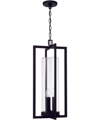 The Kent 3-Light Outdoor Hanging Lantern exudes a modern aesthetic with its bold vertical lines and sleek design. The clear glass cylinder encased in a sturdy metal frame adds a touch of contemporary elegance to any exterior space. Finished in classic black, this lantern is both stylish and versatile, seamlessly blending with various architectural styles.