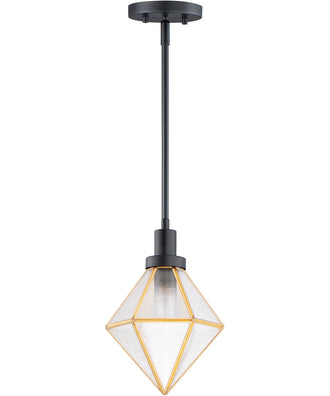The 8"W Adorn 1-Light Mini Pendant in Black and Burnished Brass is a striking addition to any space, blending modern aesthetics with timeless elegance. The pendant light features a diamond-shaped design constructed from high-quality brass and aluminum, ensuring durability and a sophisticated look. The black finish combined with the burnished brass accents creates a stunning contrast, adding a touch of luxury to your decor.