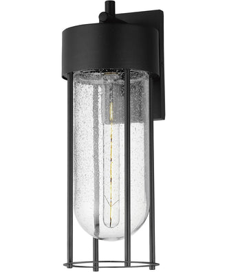 The Millennial Large Outdoor Wall Sconce boasts a robust construction crafted from high-quality aluminum and glass materials, ensuring longevity and resilience against the elements. The matte black finish adds a touch of elegance and sophistication, making it a versatile addition to your outdoor décor. The clear seeded glass shade encased within a sturdy cage design not only enhances its visual appeal but also provides a beautiful diffused light effect.