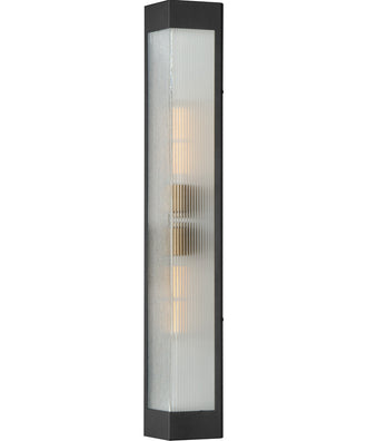 Designed with functionality in mind, the Triform wall sconce is equipped with two E26 medium bulbs, each capable of supporting up to 60 watts (bulbs not included). This ensures ample illumination for your outdoor spaces, enhancing safety and security while highlighting architectural features. The clear ribbed glass shade diffuses the light evenly, reducing glare and creating a welcoming ambiance.
