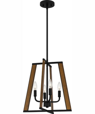 The Mayline Large 4-light Pendant in Matte Black is a stunning addition to any home, embodying both elegance and functionality. Its trapezoidal shape adds a unique geometric flair that enhances the aesthetic appeal of various spaces, including kitchens, powder rooms, entryways, walk-in closets, and home offices. The pendant's slim panes of distressed faux wood create visual intrigue while maintaining an open and airy framework, ensuring it complements rather than overwhelms your existing decor.