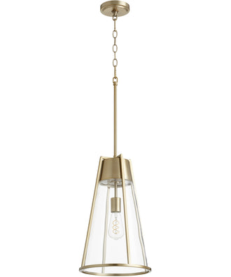 Picture this 1-light Pendant in your home or office. Refresh your room with this Aged Brass w/ Clear-finished Pendant by Quorum.