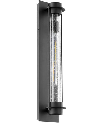 This outdoor wall lantern boasts a chic Noir finish that complements a variety of exterior color schemes. The dark hue provides a striking contrast against lighter walls, while seamlessly blending with darker exteriors. The clear seeded shade offers a textured look that enhances the overall aesthetic appeal of the fixture.