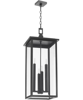 The Westerly 4-light Pendant in Textured Black by Quorum is a stunning addition to any home or office. Its sleek, rectangular frame is finished in a sophisticated textured black, offering a modern yet timeless appeal. The pendant's clean lines and minimalist design make it a versatile piece that complements a variety of interior styles, from transitional to contemporary.