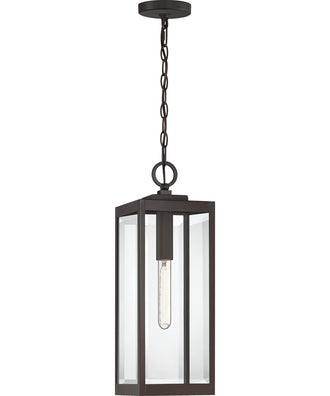 The Westover Small 1-light Mini Pendant in Western Bronze is the epitome of modern industrial elegance. Its clean lines and hand-riveted accents make it a striking addition to any space. The pendant features a long rectangular framework that showcases clear beveled glass panels, offering an unobstructed view of the lantern's sleek interior. The Western Bronze finish adds a touch of sophistication, making it a versatile piece that complements various décor styles.