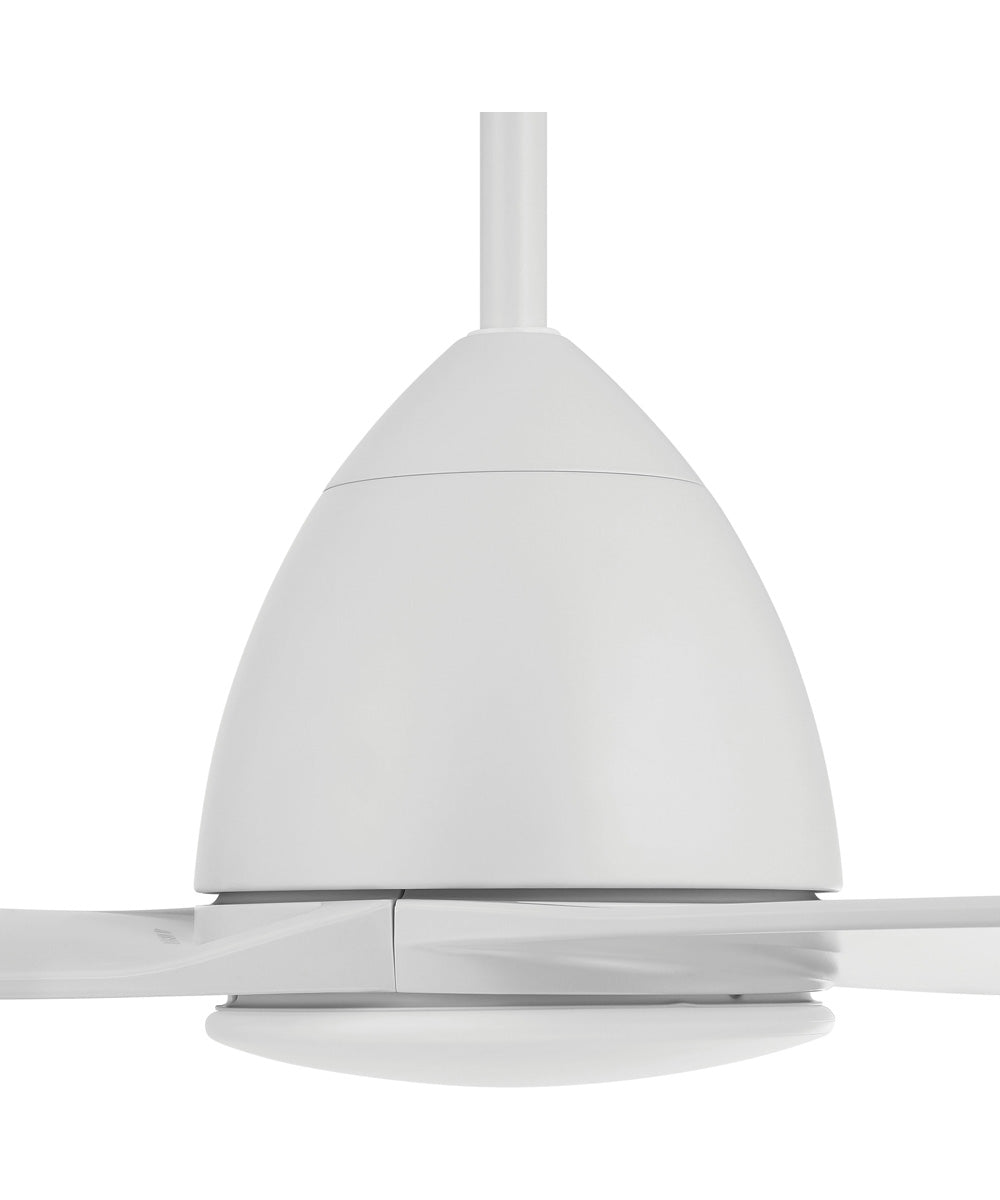 The Nitro 54" ceiling fan features a minimalist design with clean lines and a smooth silhouette. Its white finish exudes sophistication and purity, making it a versatile choice for both traditional and modern interiors. The fan includes three custom ABS blades, each with a 54-inch span and a 13-degree pitch, ensuring optimal air circulation. The frosted white acrylic shade adds a touch of elegance while diffusing light evenly across the room.