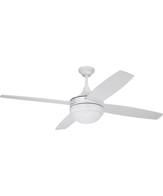 The 52" Phaze II 2-Light Ceiling Fan is a perfect blend of modern design and minimalist aesthetics. Its sleek white finish and frosted white acrylic shade give it a contemporary look that complements any room decor. The fan features a clean and simple silhouette with four reversible blades, making it an ideal choice for those who appreciate understated elegance in their home furnishings.