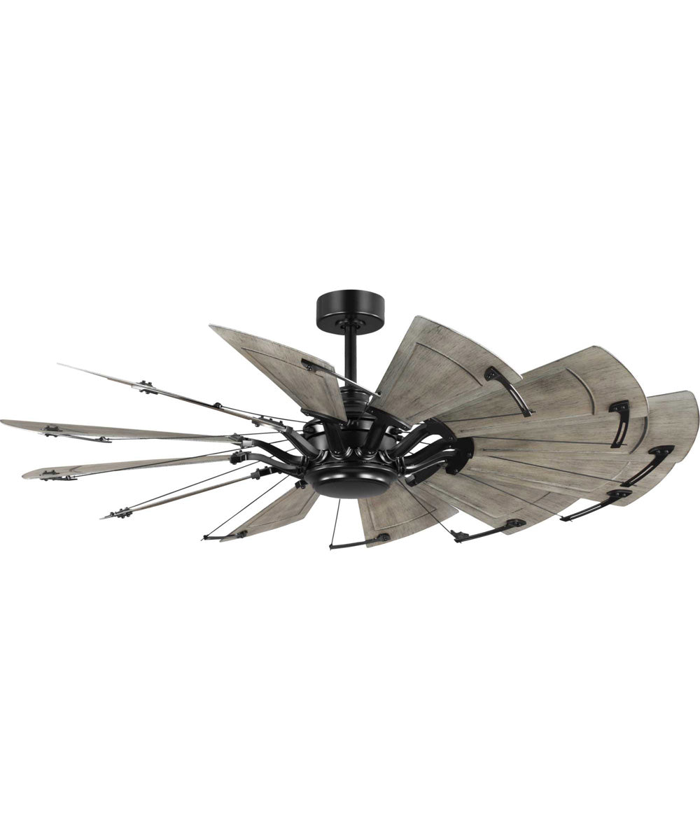 The Springer II features a unique windmill-inspired design with twelve sweeping blades that are coated in a Distressed Charcoal finish. These blades are complemented by a Matte Black housing, creating a striking contrast that adds a touch of rustic flair to any space. The large-scale design of this fan makes it an eye-catching addition to your home decor, ensuring it stands out while providing optimal airflow.