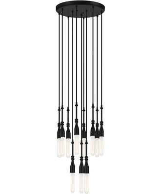 The Louise 11 Light Chandelier in Matte Black is a stunning piece that combines elegance with a touch of nostalgia. Inspired by ornamental details from the past, this chandelier features delicately turned spindles and cast appointments that create a rich layering of lights. The sleek matte black finish ensures it complements nearly any decor, making it a versatile addition to your home.