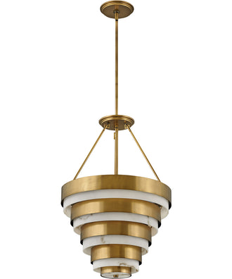 Introducing the Echelon 4-Light Medium Multi Tier in Heritage Brass by Hinkley, a stunning piece from the award-winning Lisa McDennon Collection. This exquisite chandelier embodies a perfect blend of traditional and modern West Coast styles, making it an ideal addition to any sophisticated space.