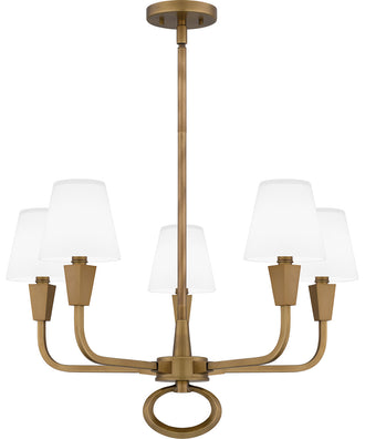 The Mallory 5-Light Chandelier in Weathered Brass is a stunning blend of modern design and classic elegance. This chandelier features a sleek silhouette that reinterprets the traditional chandelier form with a contemporary twist. The geometrical arms give it a bold, slightly masculine feel, making it a striking addition to any room.