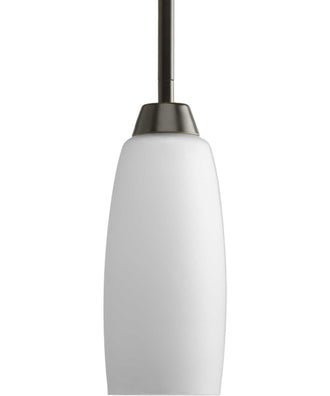 This pendant light can be mounted to the ceiling stem, making it a versatile option for different installation needs. Its compact size, measuring 9.75 inches in height and 3.875 inches in width and depth, allows it to fit seamlessly into smaller spaces without overwhelming the decor. The glass shade measures 8.125 inches in height and 3.875 inches in width, providing ample light coverage while maintaining a sleek profile.