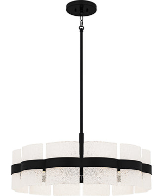 Elevate your living space with the Sweeney 6-light Pendant in Matte Black. This stunning fixture from the Sweeney collection is designed to offer both functionality and a contemporary aesthetic. The pendant light features a sleek matte black finish that exudes modern sophistication, making it a versatile addition to any room. The unique white sand glass shades are handmade, ensuring that each piece has its own distinct charm and individuality. The clear glass with white sand inside creates a mesmerizing effect, diffusing light beautifully throughout the space.
