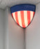 A modern multi colored shade design instills functionality within an artfully streamlined form, radiating a reflective glow while providing clear and bright light, for example when used with long-lasting LED bulbs.