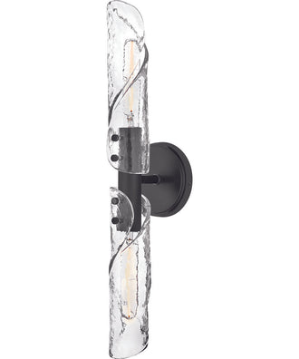 Evoking the movement of flowing water, Capri's linear, clear glass shades are pressed to create a subtle crystalline texture, then twisted and shaped by hand. Metal backplates and rounded knobs finished in Black or Distressed Brass provide balance that anchors the organic form, resulting in a look that feels both refreshing and refined.