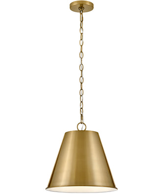 The Blake pendant features clean, fresh lines that bring a contemporary yet classic touch to your space. Its conical shape creates a striking profile that draws the eye without overwhelming the room. The lacquered brass finish adds a warm, golden hue that complements a variety of color schemes and decor styles, from modern minimalist to mid-century chic.