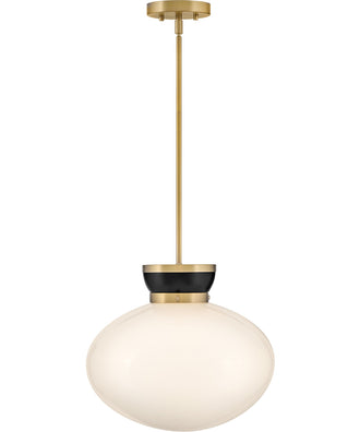 The Lucy 1-Light Medium Pendant in Black is a petite beauty that packs a big punch. Its curved lines and captivating color combinations create a whirlwind romance with classic style. The schoolhouse modern cased opal glass shade, coupled with charming accent finishes, adds a touch of softness to your space. This pendant light features a sleek black finish that complements its sophisticated design, making it a versatile addition to any room.