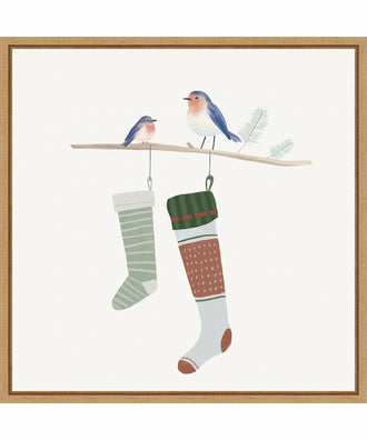 ART DESCRIPTION: Tis the season for all things merry and bright! Add holiday cheer to your home with these sweet bluebirds and their matching homespun Christmas stockings. This Amanti Art canvas art print was created by Lucca Sheppard and printed by Amanti Art in Madison WI. The canvas is stretched by hand and finished with a float frame. Individually made using traditional custom framing techniques, it has the quality you would expect from your local frame shop. Because of our attention to detail and focus on artistry, architects, interior designers, and homeowners alike choose this framed canvas artwork to create beautiful living spaces.