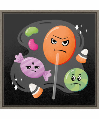 ART DESCRIPTION: Whether your favorite part of Halloween is the spooky, the scary, or the childlike glee, this moody candy artwork celebrates the best parts of this holiday season. This Amanti Art canvas art print was created by Gia Graham and printed by Amanti Art in Madison WI. The canvas is stretched by hand and finished with a float frame. Individually made using traditional custom framing techniques, it has the quality you would expect from your local frame shop. Because of our attention to detail and focus on artistry, architects, interior designers, and homeowners alike choose this framed canvas artwork to create beautiful living spaces.