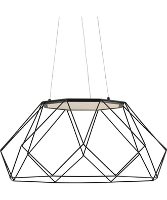 Elevate your contemporary space with the Geodesic LED Modern Style Large Hanging Pendant Light in Matte Black. This striking pendant light features an open diamond-patterned frame that exudes modern elegance and sophistication. The geometric design, coated in a classic matte black finish, adds a bold statement to any room while maintaining a minimalist aesthetic.