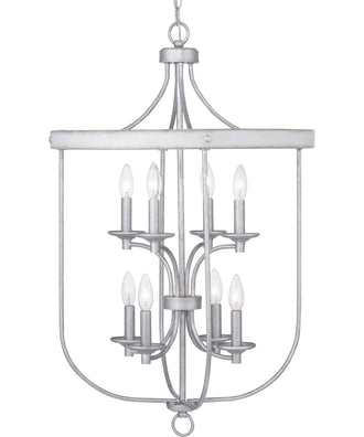 The Gulliver 8-Light Foyer is designed for exceptional quality, reliability, and functionality. It measures 33.75 inches in height and 21 inches in diameter, making it ideal for tall foyers, libraries, vaulted great rooms, or large dining rooms. The two-tiered design accommodates eight 60-watt max candelabra bulbs or LED equivalents (sold separately), providing ample illumination. For a more rustic look, vintage bulbs can be used. The fixture is compatible with standard wall dimmers, allowing you to adjust the lighting to suit your mood and needs.