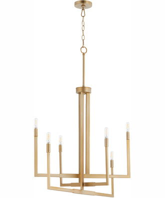 Picture this 6-light Chandelier in your home or office. Refresh your room with this Aged Brass -finished Chandelier by Quorum.