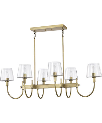 The vintage brass finish and clear glass shades make the Brookside 6-Light Pendant a versatile addition to various room themes. It complements mid-century modern, industrial, and contemporary decor styles, adding a touch of vintage charm and modern elegance. The clean lines and minimalist design ensure it blends seamlessly with different color palettes and furniture styles.
