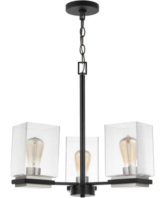 The Crossroads 3-Light Chandelier in Matte Black is a striking addition to any home or office space. This chandelier features a modern, geometric design that combines clean lines with a sophisticated matte black finish. The clear glass shades add a touch of elegance, allowing the light to shine through brilliantly and illuminate your space beautifully. The steel construction ensures durability and longevity, making it a worthwhile investment for your interior décor.